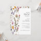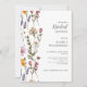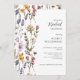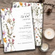 Earthy boho wildflower bridal shower invitation featuring a pretty watercolor illustration of wildflowers in rose pink, lavender, orange green hues.