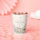 This is a boho and whimsical bridal shower paper cup. The design features a colourful and delicate field of summery wildflower florals in pretty shades of blue, terracotta, pink, purple and yellow. The butterflies and bees add the finishing whimsical and pretty touch. You can customise all of the text to your requirements. Please contact the designer for any variations to this design or for additional matching products.