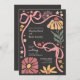 Coquette inspired wedding theme featuring pink bows and wildflowers over a dark background.