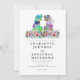 Bring a touch of Jurassic fun to your special day with this funny colourful watercolor dinosaur-themed wedding invitation! If you're a couple who loves dinosaurs, this is the perfect way to showcase your dinosaur passion with a lighthearted, yet elegant design. The invitation features a charming T-Rex bride and groom standing proudly in a beautiful watercolor wildflower meadow, surrounded by vibrant spring and summer watercolor florals in shades of pink, purple, green, blue, orange, peach, and yellow. Ideal for a spring or summer wedding.