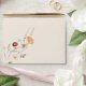 Wedding invitation envelopes are chraacterised by boho style, floral artwork, neutral earthy, and beige colours, with a mix of different font styles, often in different sizes, to create a unique, eclectic look that makes these invitations natural aesthetic.