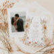 Embrace the beauty of fall with our Boho Wildflower Wedding Photo Invitation. Perfect for the free-spirited couple, this invitation captures the essence of autumn with a delicate arrangement of wildflowers in rich, earthy tones. Your favourite engagement photo takes centre stage. Matching items in Cava party design.