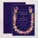 Fall Wedding Invitation Boho Wildflower Wreath in navy blue and white
