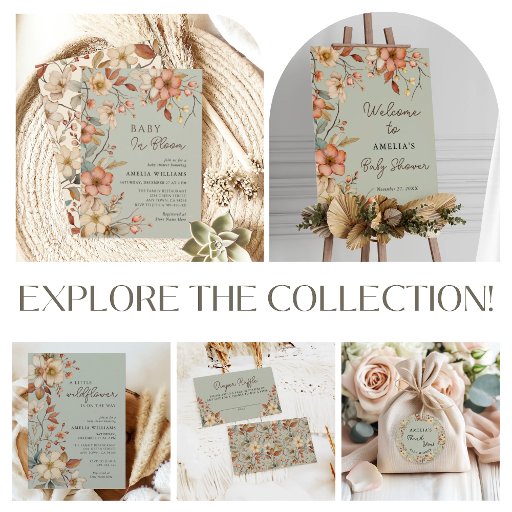 Introducing the Boho Fall Wildflowers White Baby Shower Collection, a delightful blend of warmth and whimsy. This charming design features soft wildflowers framed in a cosy arch of terracotta and white, creating the perfect ambiance for celebrating the arrival of a new little one. Welcome your loved ones into a heartfelt, bohemian celebration that captures the joy and anticipation of this special day with an inviting touch of autumnal flair.