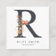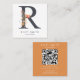 Boho Wildflower Initial R QR Code Square Business Card