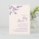 This stylish and elegant baby shower invitation showcases delicate wildflower lavender blooms in a serene boho design, making it perfect for a spring, summer, or fall celebration. The soft pink background enhances the gentle lavender florals, while the calligraphy script beautifully complements the design. Matching items are available.