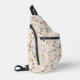 This unique sling crossbody bag has a pattern of scattered wildflowers in watercolor hues of yellow, purple and green over a neutral beige background. The look is carefree and whimsical. A text template is included to personalise this item with your monogram initials. The look is boho fresh and modern with a touch of nature-inspired outdoor charm.