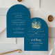 Boho Wildflower Navy Arch Front & Back Wedding Invitation
