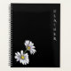 Boho Wildflower Personalized Black Gift for Her Planner. A calm, elegant planner designed for everyday organization of events, activities, thoughts and creativity. This black spiral planner features delicate watercolor floral daisy design and a personalized name or message on the cover, making it a thoughtful gift for writers, students, creatives, or anyone who loves beautiful stationery. A lovely personalized gift for birthdays, graduations, teachers, or everyday encouragement.