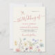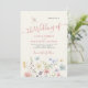 Elegant rustic boho botanical wildflower meadow making a chic spring summer garden budget all in one QR code to RSVP online photo wedding invitation with a trendy handwritten calligraphy script and pastel pink and yellow champagne ivory cream colour palette.