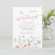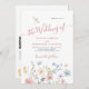 Elegant rustic boho botanical wildflower meadow making a chic spring summer garden budget all in one QR code to RSVP online photo white wedding invitation with a trendy handwritten calligraphy script and pastel pink and yellow champagne ivory cream colour palette.