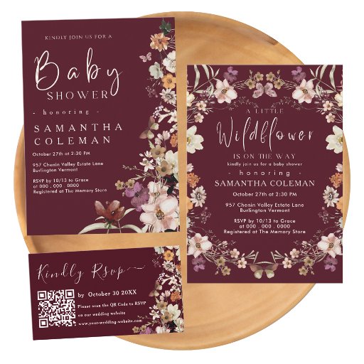 Rustic Boho Wildflower Burgundy Baby ShowerDesigned by Katrina W.