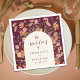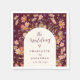 Bring an autumn colours including warm burgundy, ivory cream, burnt orange, terracotta and beige, boho rustic charm to your fall wedding table with these personalised napkins, inspired by the beauty of a whimsical wildflower floral arch. Featuring original hand painted watercolor floral on a burgundy background unique artwork by Catherine Sweetman, the design showcases hand-painted wild flowers in earthy tones of burnt orange, terracotta, plum, peach, coral, soft pink, and golden yellow surrounding a warm autumnal ivory cream elegant arch perfect for an autumn, late summer, or spring celebration. The soft, bohemian style pairs beautifully with a mix of burgundy elegant script and modern typography, allowing you to add the bride and groom’s names along with the wedding date for a personalised touch your guests will remember.