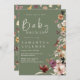 Boho Wildflower Rustic Sage Green Baby Shower Invitation