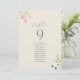 This elegant boho floral wedding seating chart table card features soft watercolor wildflowers in blush, blue, and yellow tones on a warm ivory background. The romantic botanical design creates a refined yet natural look, perfect for garden, spring, summer, and countryside weddings.
