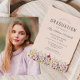 A beautiful watercolor floral border of wildflowers decorates the bottom edge of this trendy boho graduation party invitation. Customise the charcoal grey text on a blush pink background, with the graduate's name in handwriting script; the school and class year in sans serif; and the date, venue, and RSVP details in serif font. Easily replace the sample image on the back with a vertical photo of your graduate.