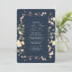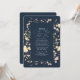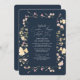 A boho wedding invitation with a modern touch. A wildflower floral soft pink and pale yellow frame surrounds the wedding information over a navy background. Great for spring, summer of fall.