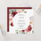Our bohemian wedding invitation features a (not real) gold round frame with burgundy, blush flowers and greenery. Perfect for fall or winter weddings.