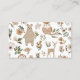 Boho Woodland Animals Baby Shower Diaper Raffle Business Card