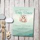 A sweet owl with flower elements is centred in this sweet green woodland forest animal themed invitation. A landscape in watercolor green hues as background makes this a great forest and nature themed invitation. green is a great gender neutral colour for a baby shower.
