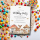 A charming design with smiling deers, fairy mushrooms and elegant calligraphy! You can personalise this invitation with your own details.