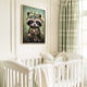 Add a gentle woodland touch to your nursery with this sweet raccoon illustration. Soft watercolor textures, oversized expressive eyes, and a delicate floral crown create a calm, storybook feel that works beautifully in a baby room, toddler room, or playroom. This nursery wall art fits boho nursery decor, woodland nursery themes, and gender neutral spaces. It also makes a thoughtful baby shower gift for new parents building a cozy forest-inspired nursery gallery wall.