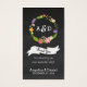 A boho wedding invitation suite featuring a whimsical floral wreath comprised of colourful woodland flora. The chalkboard background gives this design a laid-back vibe that's perfect for outdoor weddings.