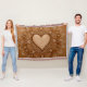 This throw blanket features a warm gold mandala art print of an ornate, heart-shaped center and intricate floral patterns - boho romantic decor in sepia tones.
