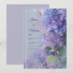 I have envisioned a celebration cloaked in soft, ethereal magic with this dreamy botanical composition. This design features lush lavender hydrangea blossoms that fade into a misty watercolor background of muted blues and purples. Delicate shimmering bokeh and stardust accents float across the top and bottom, adding a touch of whimsical fantasy, all anchored by a sophisticated double gold frame. The vibrant detail of a single green serrated leaf brings a touch of grounded nature to this celestial garden scene. Imagine this atmospheric scenery as the romantic introduction to your whimsical garden wedding suite. It is the premier choice for a fairytale spring ceremony, a nocturnal garden gala, or a shabby chic summer event. To truly enchant your guests, I suggest printing this on heavyweight pearlized shimmer paper or a soft-touch matte cardstock to emphasize the glow of the bokeh effects. Pair it with a dusty plum envelope and a silver wax seal—it’s not just a wedding detail; it’s a curated heirloom that promises your guests a night of soft enchantment and floral beauty.