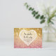 COLOR PALETTE: golden metallic colour, pink DESIGN COLLECTION: A matching DIY table seating place card to use for formal wedding receptions, bridal showers or business events. Designed to match the Ticket Stub Corner Style invite option, this design was created with gorgeous warm golden fading to blush pink and then bright pink shimmering, glitter look Bokeh image. Modern and trendy, feminine glitzy bling style, this invitation is part of a simple and contemporary wedding invitation set. A semi transparent half round layer with white border has a typographic font typography layout of the text. It has pretty, sweet soft pastel colours and a girly girl feel. Cool, hip and trending - sure to please the bride for her Bridal Shower Invitation and theme.