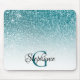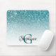Bokeh Teal Glitter White Ombre Monogram Mouse Pad