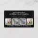 A quick and easy business card that can be customised to suit any business or profession. Shown here for an interior design company as an example. Simple white text and square cropped photo frames with a black background. Several text fields that can be personalised for your own needs. Unisex design without frills so it suits both male and female professionals. Background colour can easily be changed to any rich, dark colour using the advanced customisation options.