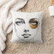 A powerful and artistic throw pillow featuring a highly detailed sketch of a female face, drawn in expressive graphite lines with intense gaze and strong features. One eye is highlighted with a bold golden accent, adding contrast and depth to the monochrome palette. This modern surrealist-inspired design makes a striking statement in any contemporary or artistic space. Perfect for lovers of edgy, high-contrast art.