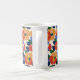 A vibrant and bold abstract floral design featuring large red, orange, and blue flowers with green and navy leaves on a cream background. The playful shapes and bright colours create a modern, artistic aesthetic perfect for textiles, wallpapers, or decorative prints.