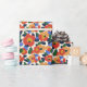 A vibrant and bold abstract floral design featuring large red, orange, and blue flowers with green and navy leaves on a cream background. The playful shapes and bright colours create a modern, artistic aesthetic perfect for textiles, wallpapers, or decorative prints.