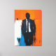 Add a touch of bold sophistication to your space with this captivating abstract artwork. Featuring a sharp-dressed man in a suit set against a vibrant orange and blue palette, this painting exudes confidence and modernity. Perfect for offices, homes, or as a unique gift for art enthusiasts, this piece is a statement of style and elegance.