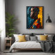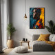This AI-generated abstract portrait glossy poster print showcases a stunning fusion of vibrant expressionism and contemporary art. The bold brushstrokes and intricate colour contrasts—rich blues, fiery yellows, and deep reds—create an emotive and striking depiction of a woman in profile. This piece exudes strength and individuality, making it a standout addition to modern home decor. The dynamic texture mimics traditional oil painting while embracing the limitless possibilities of digital art. This artwork celebrates cultural beauty and the power of expression through art, making it perfect for personalising spaces with warmth and depth. A captivating centerpiece for living rooms, offices, art studios, or galleries, this unique creation also makes an excellent gift for art lovers, birthdays, housewarmings, and other special occasions.