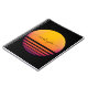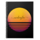 A notebook personalised with your name and featuring a stylised sun in shades of orange and purple, on a black background.