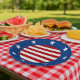 Bring timeless pride to your table with the Bold Americana design. A striking celebration of red, white, and blue. Featuring flowing stripes and crisp stars in a clean, high-contrast layout, this 9-inch plate is perfect for Fourth of July picnics, summer BBQs, and patriotic parties. Whether you’re hosting at home or lakeside, this design sets the tone for a festive, freedom-filled gathering. Made for celebrating, designed to stand out.