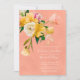 Bright and Bold Floral Wedding Invitations. Bright and Bold floral botanical arrangement with colours of yellow, peach, pinks, and white against a Apple Green mottled peachy pink background. Wonderful for a spring, summer, boho or garden wedding!