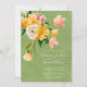 Bright and Bold Floral Wedding Invitations. Bright and Bold floral botanical arrangement with colours of yellow, peach, pinks, and white against a Apple Green mottled background. Wonderful for a spring, summer, boho or garden wedding!