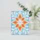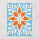 Energetic orange blossoms float over calming sky blue, evoking a fresh, breezy floral pop.
