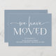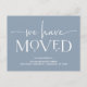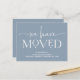 These seriously modern, dusty blue moving announcements feature elegant, ornamental white text for a whimsical new look that is still timeless and classy. A stylish way to let friends and family that you have moved to a new home!