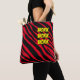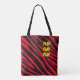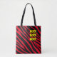 with a bold animal print in zebra style this bag is perfect both for work and for play. One side says Work and one side says Play. Contrasting colours in text and background makes it stand out. And font with a dark shadow makes the words pop. For all who can resist a animal print.