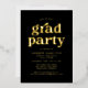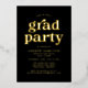 Stylish graduation party invites featuring "grad party" displayed in bold gold foil lettering with the graduate's name and party details shown below on a black background. The back of the black and gold graduation party invite features the graduate's vertical photo. The simple graduation party invites are perfect for both high school and college graduates.