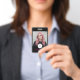 Wow your customers with this photo badge featuring an elegant typography design in bold black and hot pink together with your logo, plus a photo and the title of your employees. On the back personalise with your business name, your logo and all your contact information.