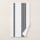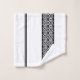 Bold black and white geometric patterned bathroom towel set.