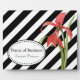 A modern and bold black and white diagonal striped business name plaque with a beautiful red amaryllis flower. Personalise this floral company name plaque by adding your name and occupation to the custom text area.