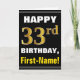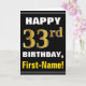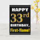 Bold, Black, Faux Gold 33rd Birthday w/ Name Card