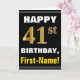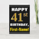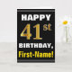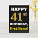 Bold, Black, Faux Gold 41st Birthday w/ Name Card